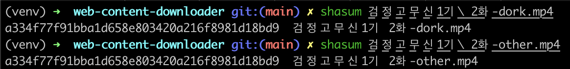 md5는 확률이 극악이긴 하지만 collision문제가 있을 수 있다. 따라서, sha를 통해 한번더 검증해보았다.