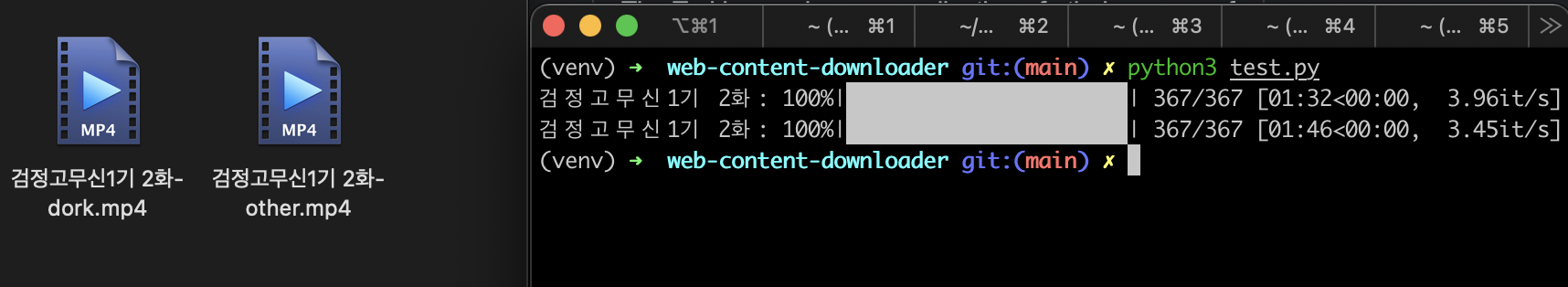 그 예제로 검정고무신을 다운받아 보도록 하자. 직접 주소로 일일히 다운받아 영상을 합치기는 정성이 너무 많이 필요하므로 간단한 PoC를 작성해서 실제로 다운로드 해 보았다.